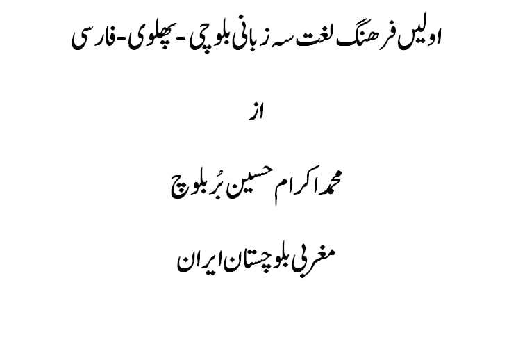 مغربی بلوچستان ایران سے تعلق رکھنے والے محمد اکرام حسین بُر بلوچ کی یہ کتاب بلوچی، پہلوی اور فارسی کی تین زبانی لغت پر مشتمل ھے۔