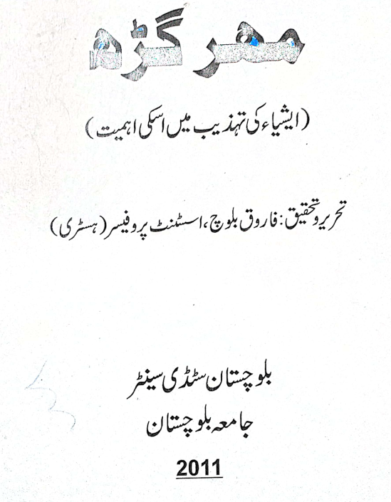 ڈاکٹر فاروق بلوچ کی یہ تحقیقی کتاب مہر گڑھ تہزیب، اسکی قدامت، ادوار، تفصیل، تصاویر پر مشتمل ھے۔