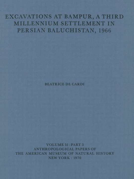 Excavations at Bampur, A third millennium settlement in Persian Baluchistan, 1966 by Beatrice De Cardi