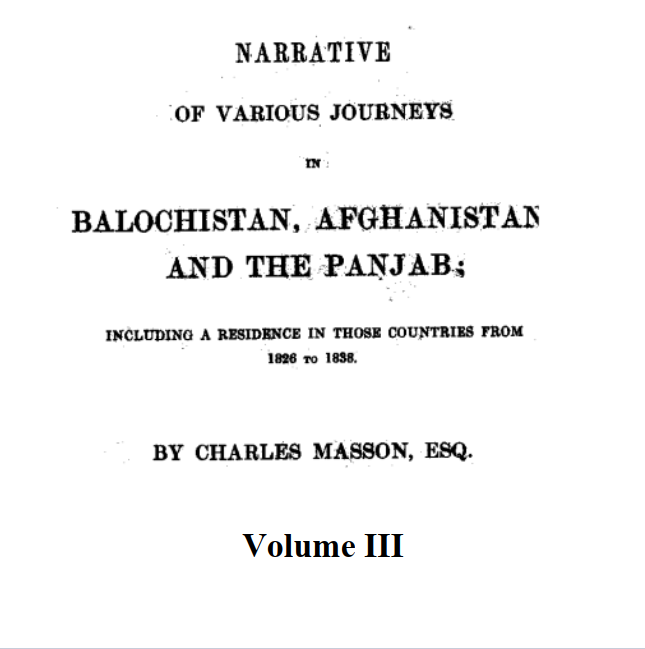 Narrative of various journeys in Balochistan, Afghanistan and the Panjab; including a residence in those countries from 1826 to 1838 Volume III by Charles Masson, ESQ.