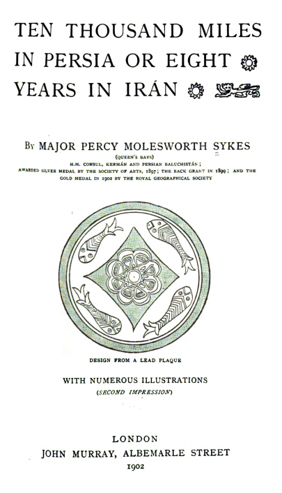 Ten Thousand Miles in Persia or Eight Years in Iran by Major Percy MolesWorth Sykes H.M Consul, Kerman and Persian Baluchistan